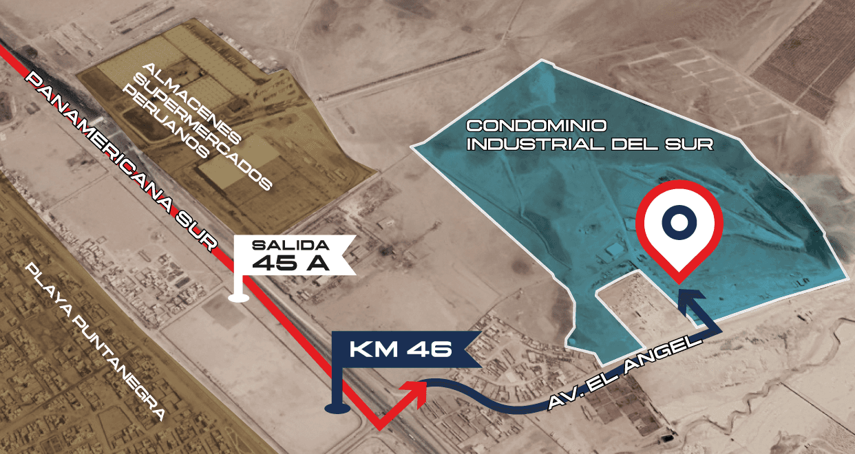 Está ubicado a solo 500 metros de la Panamericana Sur, en el km 46, ofrece conexión directa con Lima y acceso a los principales corredores logísticos de la capital.